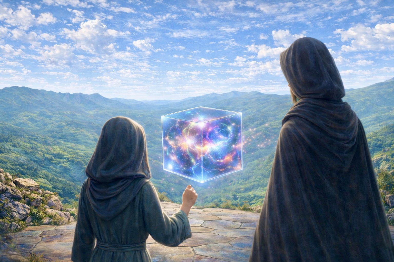 Her body had reformed on a narrow path carved into a cliff face. Below was a drop so deep the bottom dissolved into haze. Huge rocks jutted outward, shielding her ledge from the worst of the icy hurricane gusts. A voice rose from the cliffs below, steady and calm.