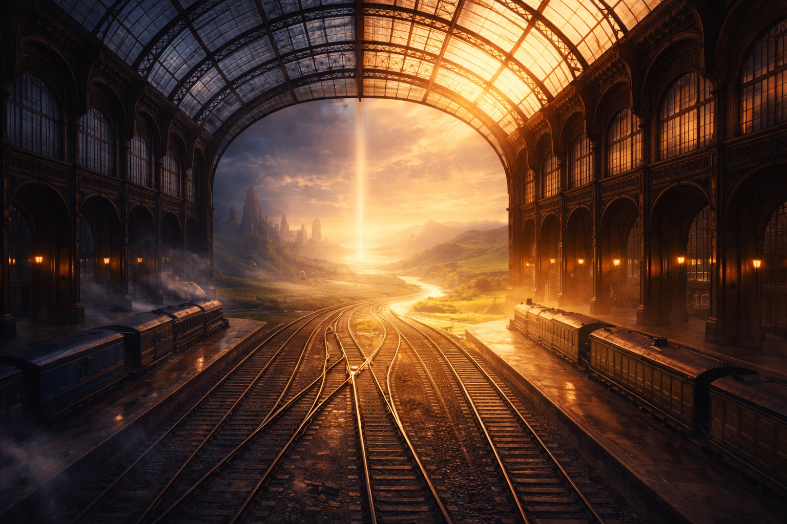 Imagine sitting on one of those old country trains — the kind with wooden seats and a gentle rocking motion. Outside the window, fields slide past. Small farms appear and disappear. A quiet town drifts into view, and for a moment, you glimpse a baker’s shop or a person standing in a garden. Some stations pass without stopping. At others, the train pauses briefly, just long enough to notice children waving, or someone waiting on the platform.