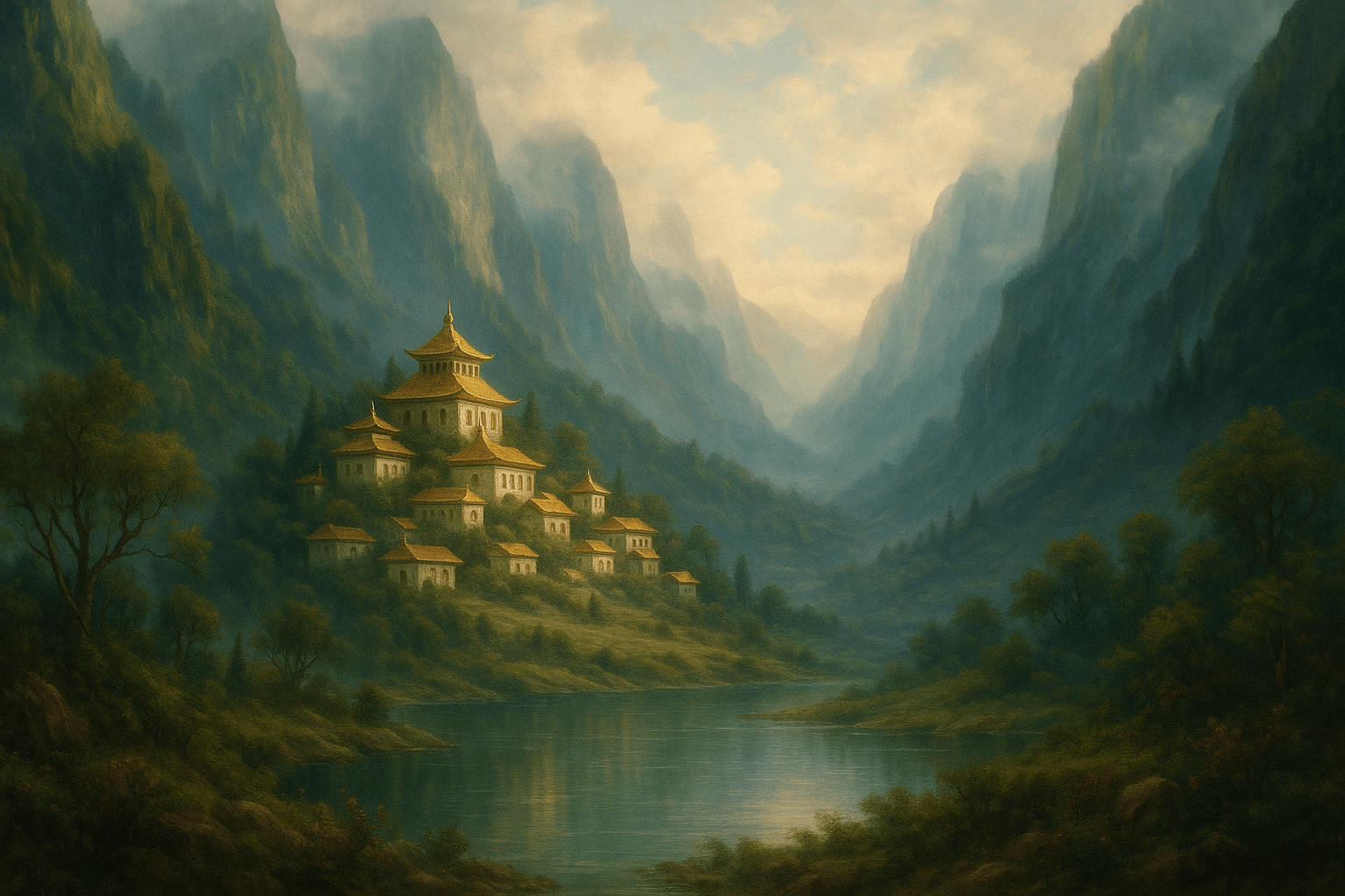 Shangri-La is a mystical, timeless valley hidden high in the Tibetan mountains — a place of serene beauty and profound peace, where people live in harmony and age almost imperceptibly. It is a true sanctuary of deep stillness and gentle happiness.
