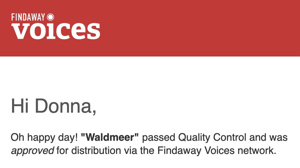 It was a happy day to get this email recently, Hi Donna, Oh happy day! Waldmeer passed Quality Control and was approved for distribution. Waldmeer (Book 1 of Waldmeer) is now available as an audiobook. Three months ago, I told you that I had started recording. The process has been a huge learning curve at many different levels.