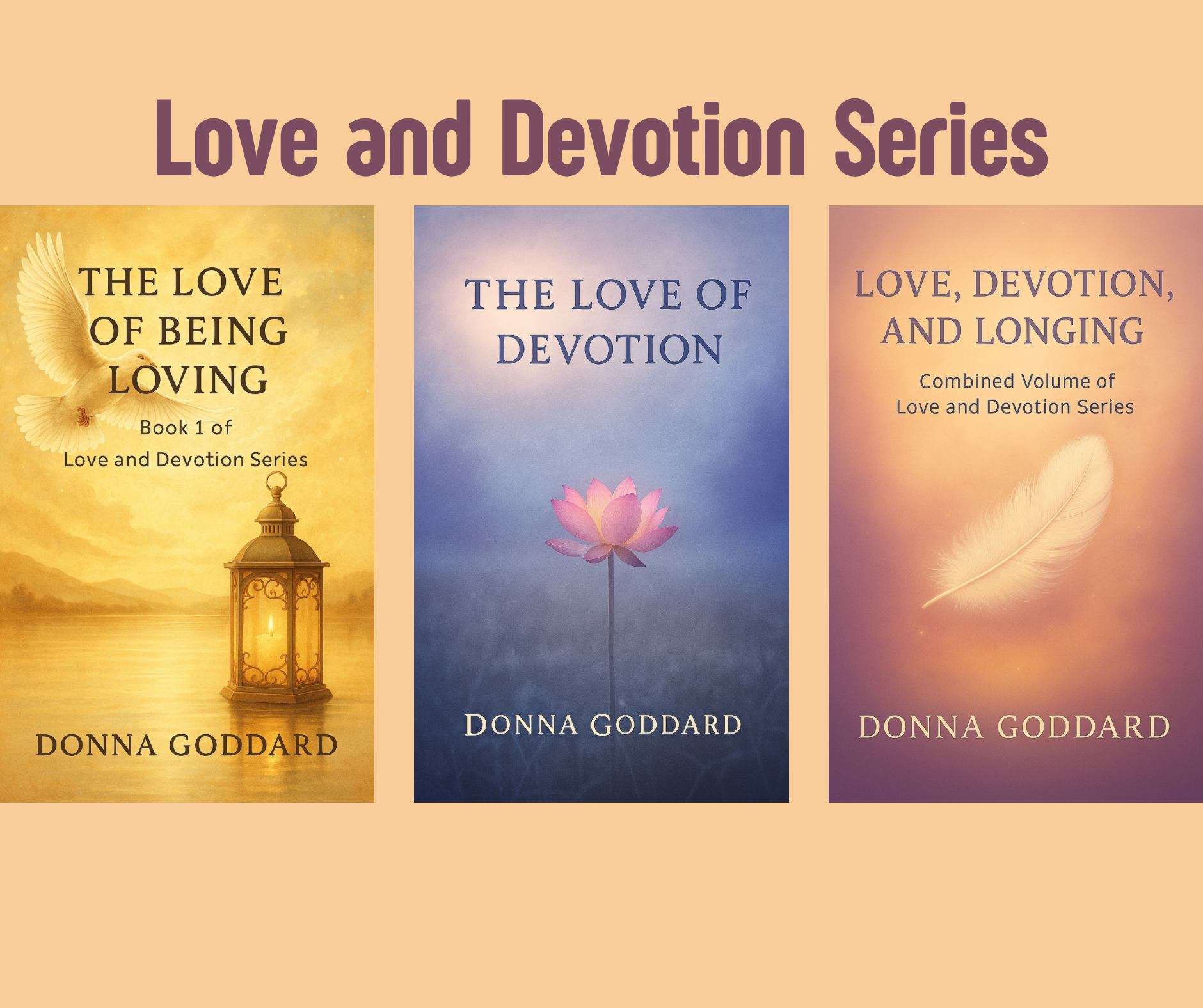 Book One – The Love of Being LovingBook Two – The Love of DevotionCombined Volume – Love, Devotion and Longing The Love and Devotion series is a gentle and poetic exploration of the spiritual path. Through themes of love, healing, forgiveness, and surrender, these books invite readers into a deeper connection with the soul and … Continue reading Love and Devotion Series